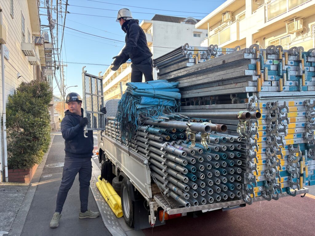 足場屋さんが5人で作業をして、15時に組み終わりました。