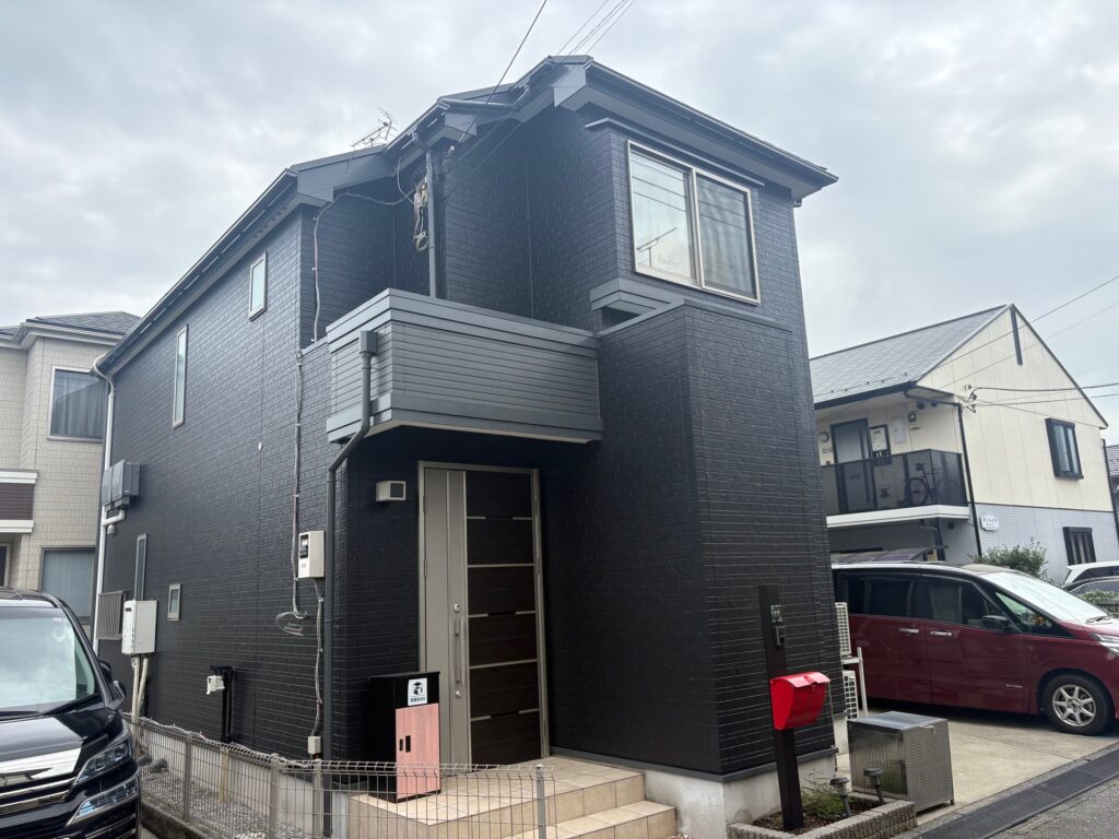 ガラッとイメージが変わって、私も大満足の仕事をさせていただきました。外壁・屋根・コーキングと高耐久の材料を使用しているので、安心してお過ごしできますね。ポストの赤は私も気に入っています。