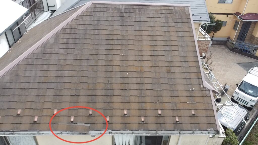スレート屋根は経年劣化で割れやすくなります。ひび割れから雨水が侵入し、下地を傷める恐れがあります。
