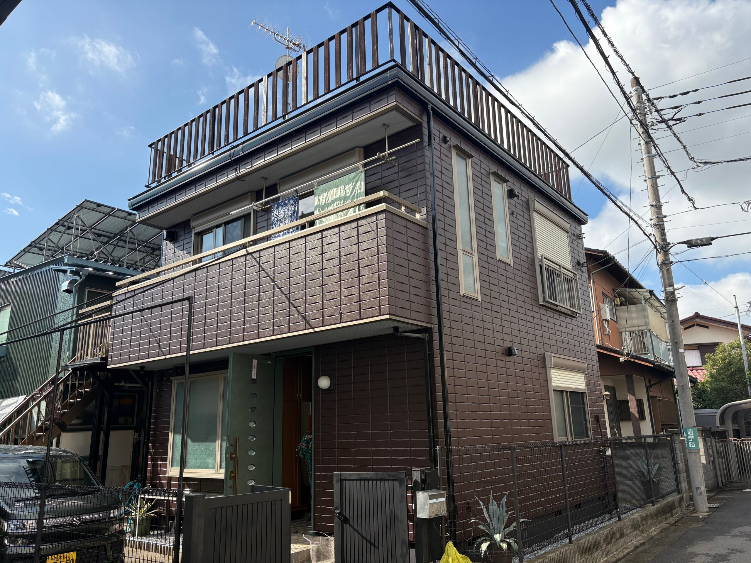府中市のヘーベルハウス(築20年)をブラウンで外壁塗装!