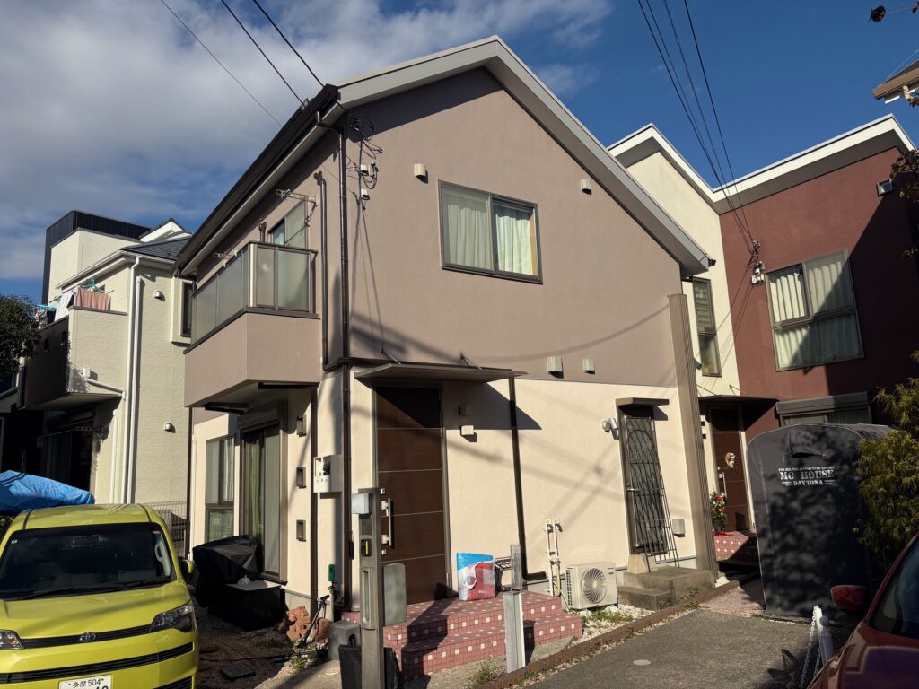 調布市の木造モルタル住宅をベージュとアイボリーで外壁塗装!